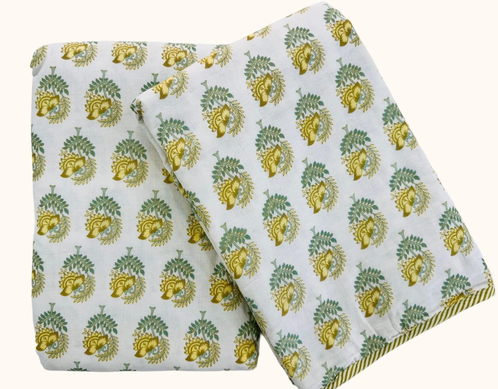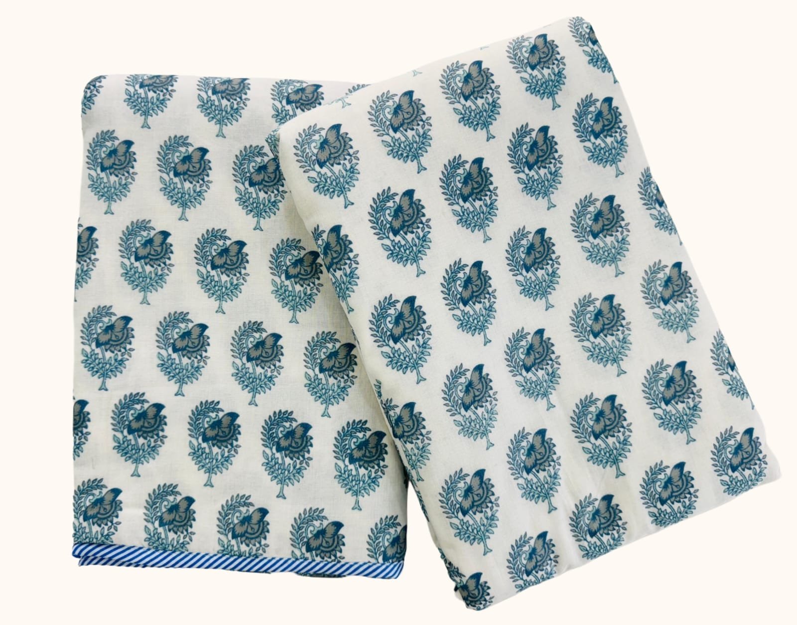 Designed with meticulous attention to detail in Jaipur, this three-layered Mulmul cotton AC quilt combines unparalleled softness with exceptional breathability. Made from pure cotton, it is lightweight yet cozy, providing optimal comfort for year-round use. The quilt?s unique design ensures a perfect balance of style and functionality, with intricate patterns that enhance the aesthetics of your space. Its natural antibacterial properties promote hygiene and long-lasting freshness, making it a practical yet elegant addition to your bedding collection.